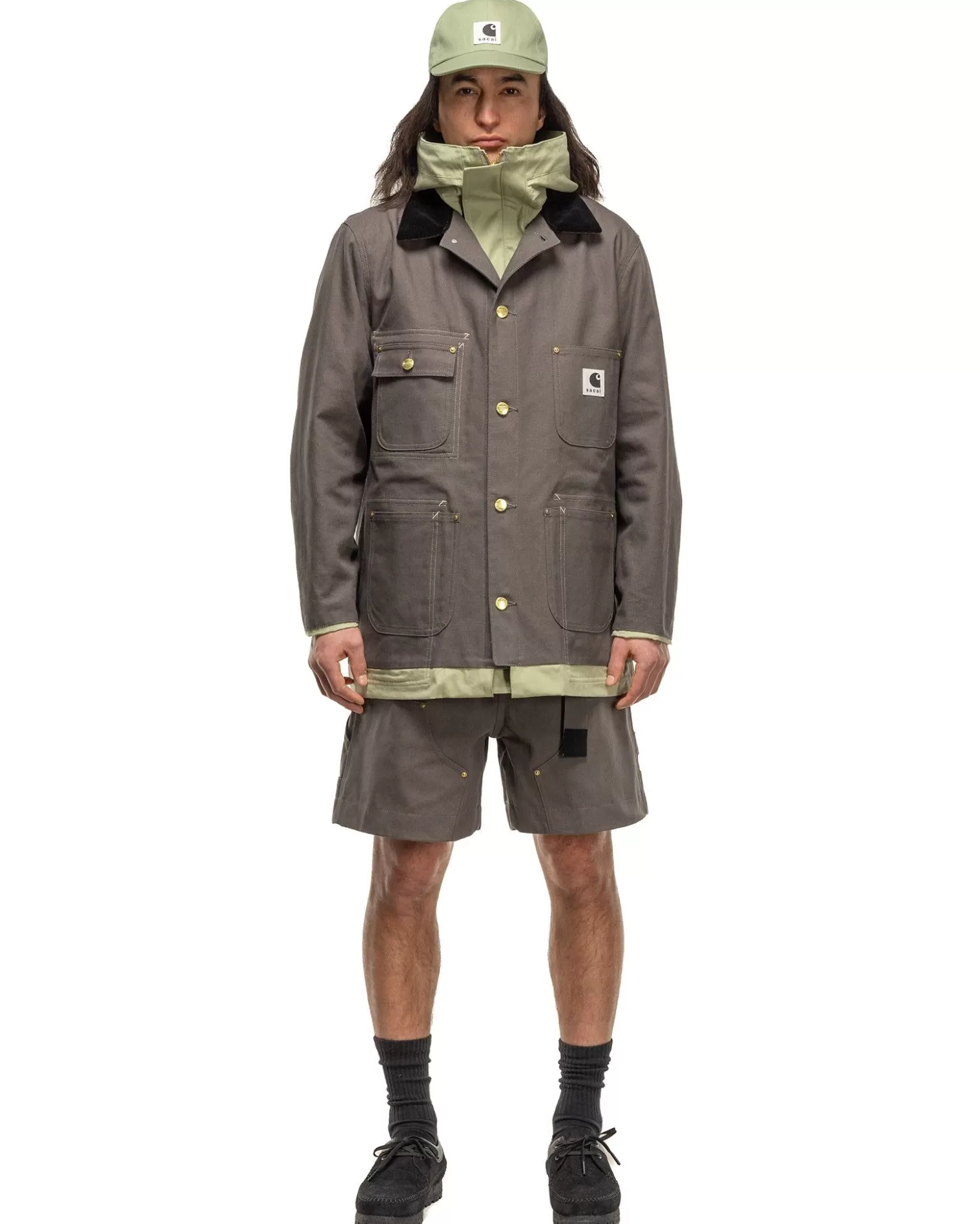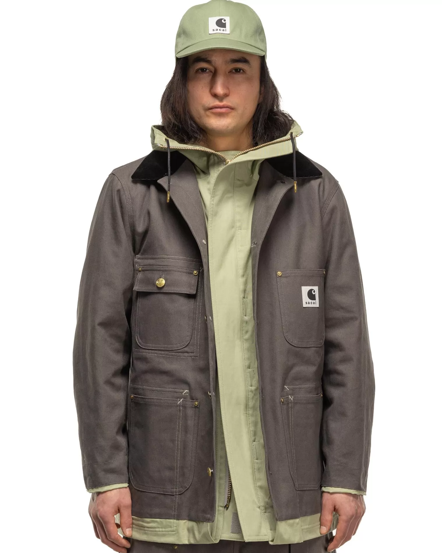 sacai Carhartt Wip Reversible Duck Coat Grey/Green Cheap