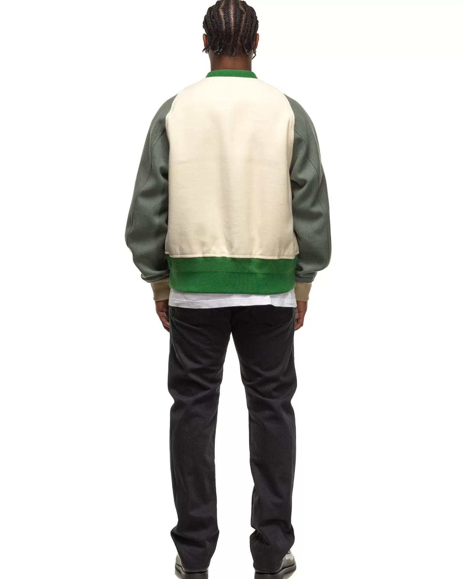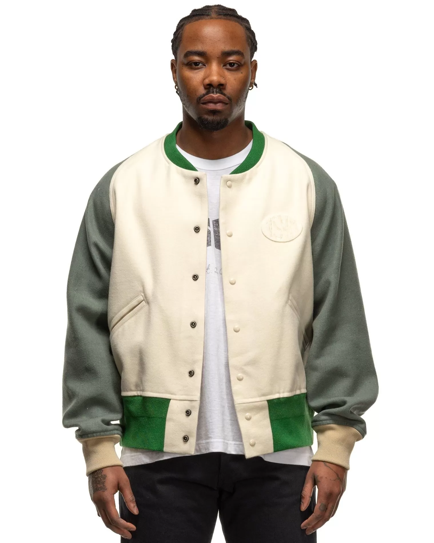 A Luxurious And Timeless Take On The Iconic Varsity Jacket. The Body Is Crafted From A Dense Wool And Linen Blend With A Pressed Finish And The Contrast Sleeves Are Made In The Same Lush, Textural Wool Blend That Will Mold To The Body Of The Wearer. Finishing The Garment Is A Tonally Embroidered “Vsvm” Brand Patch, Classic Welt Hand Pockets, Custom Snap Closure, And Wool And Linen Ribbed Knit Cuffs, Collar And Hem, Completing An Elevated But Authentic Look.